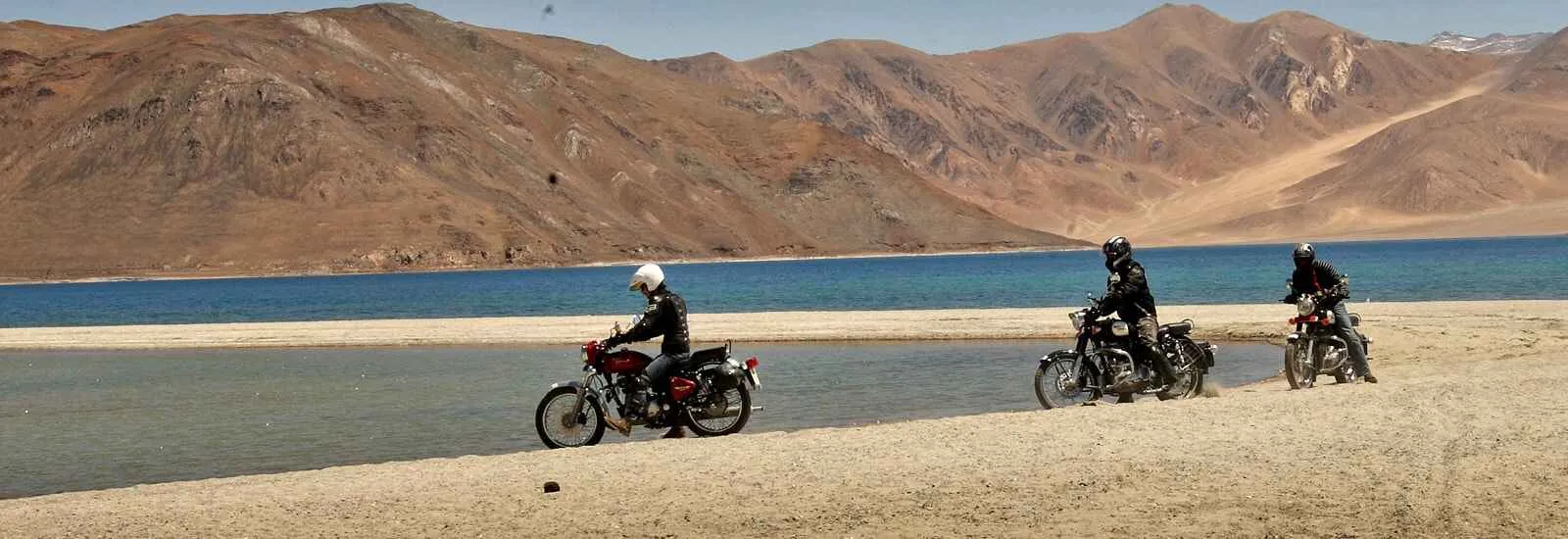 One of the toughest water crossings on this route is near the Lake - real challenge for man and machine! But once you get to the lake you will forget the tough ride, the maniacal streams and the cold...To find such a huge expanse of calm blue water at that altitude ! Its definitely worth the ride. The Pangong Tso (lake of great hollowness) is almost 130 Km long and 06 to 07 Km wide, extending east to west at a height of 14000 Ft.